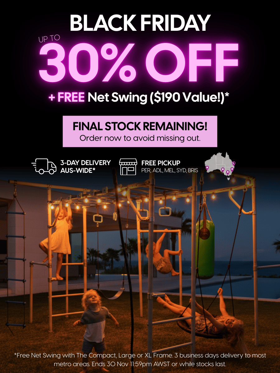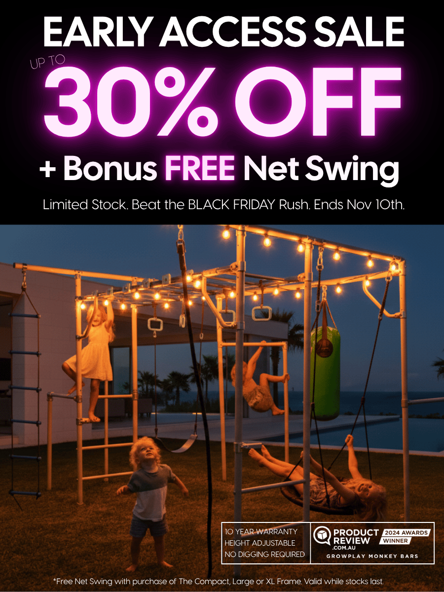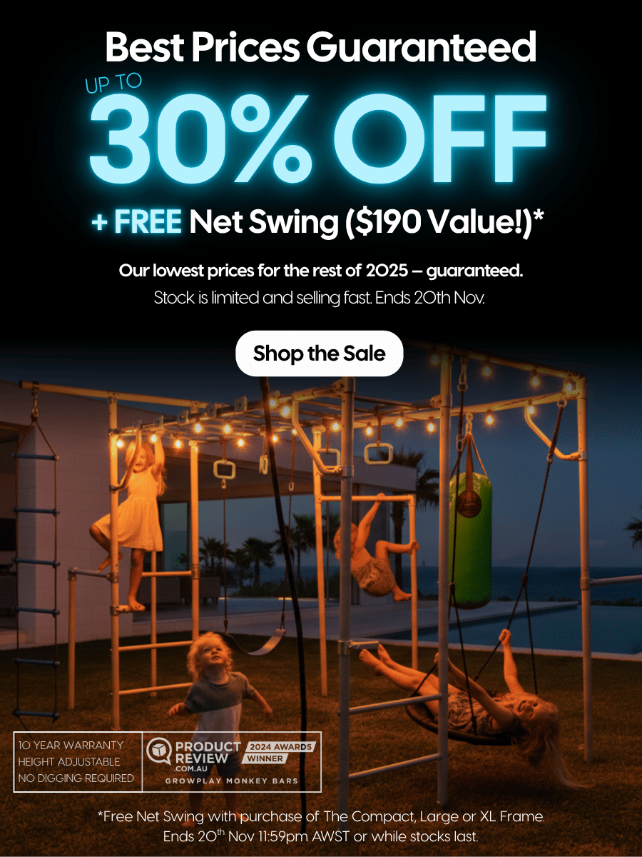 Built for big imaginations and even bigger adventures — Growplay Monkey Bars keep kids active, off screens, and outdoors for hours. Loved by families across Australia, New Zealand, the UK, and the USA.