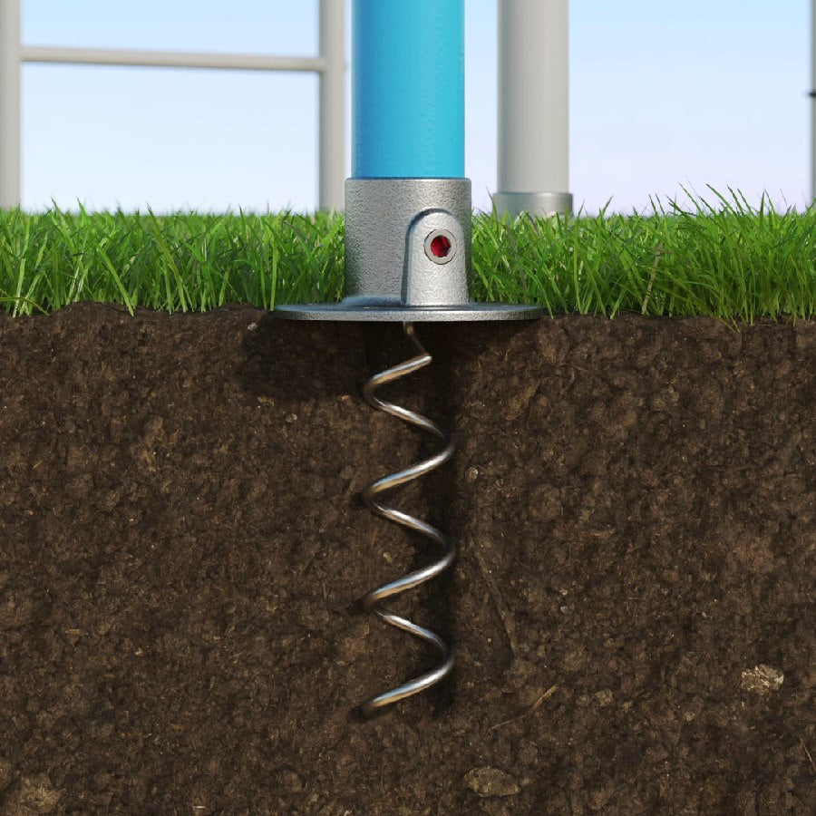 • Easy to use – simply screw into the ground through the feet of your monkey bar frame